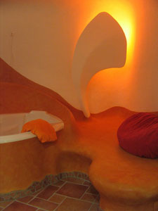 Mit organischen Formen und besonderen Lichtobjekten wurde eine Atmosphäre geschaffen, die das ganzheitliche Betreuungskonzept unterstützt. Gebärende, Hebammen und ÄrztInnen fühlen sich hier wohl. Die Frauenärztin, die Hebammen und der Gestalter sind davon überzeugt, dass eine angenehme Raumatmosphäre die körperliche Entspannung und damit auch die Voraussetzungen für eine sanfte Geburt fördert.