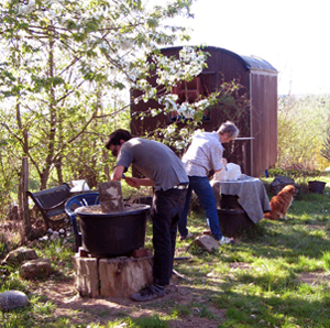 Bei Buchung eines Bauwagens im Frühling oder Sommer(16 bis 28€ /Nacht) oder den Ferienappartements im Nachbardorf Hohn (Dröppelminna) kann der Bildhauer-Samstag auch zu einem Wochenendurlaub in traumhaft ländlicher Umgebung ausgebaut werden.