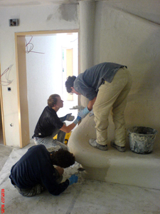 Je nach Material und Technik kann die Form durch Ab- und Auftragen mehrfach korrigiert werden. Je nach Art des Mörtels können ohne Gerüst kleinere Objekte für „Drinnen und Draußen“ gefertigt werden. Die Technik eignet sich eher für kompakte Formen - es sind aber, je nach Material, auch feingliedrige Formgebungen möglich - auch durch die Einarbeitung verschiedener Armierungsgewebe. Die Weiterverarbeitung von kleinen Gittergerüsten aus vorangegangenen Seminaren ist möglich. Alte und neue Rezepturen werden verraten, Grundlagen der Materialkunde und Oberflächenbehandlung werden vermittelt. Der Eigenheiten der verschiedenen Materialien sollen im praktischen Umgang erlebt werden.