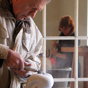 Im Winter findet der monatliche Bildhauer-Samstag bei KARAMULIS in der alten Wollfabrik statt. Hier lässt es sich gemütlich arbeiten, wenn draußen der kalte Wind pfeift! Steinbildhauerei, Formfindung und an manchen Tagen auch Holzbildhauerarbeiten sind hier möglich. Das fortlaufende Seminar (Start war Herbst 2005) ist offen für neue Interessenten, Spontane und Gelegenheitskreative.